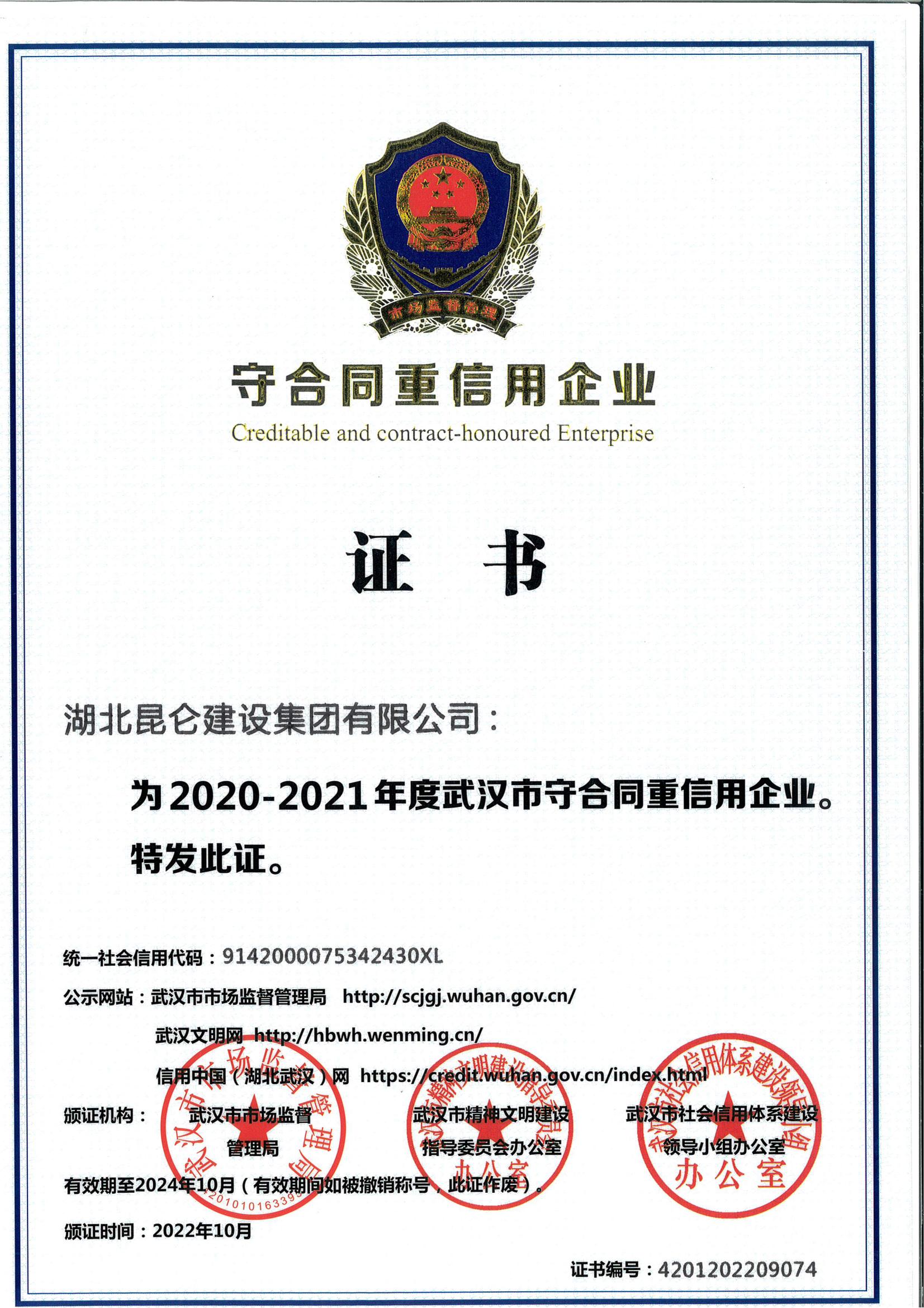 • 第十六屆2020-2021年度湖北省守合同重信用...